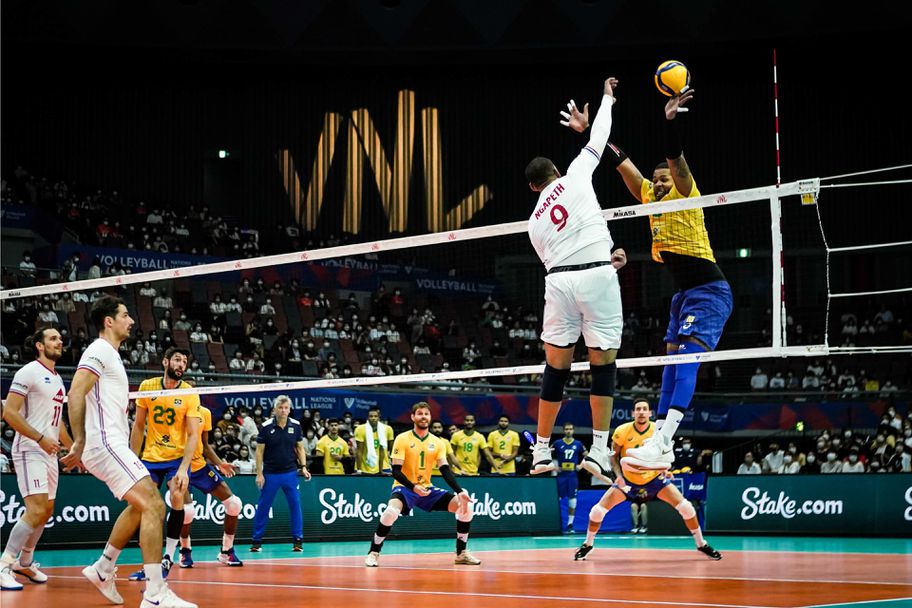 Олимпийските шампиони от Токио 2020 от Франция записаха важна и чиста победа над Бразилия с 3:0 (25:21, 25:22, 25:21) в Група 5 в Осака (Япония) във Волейболната лига на нациите.