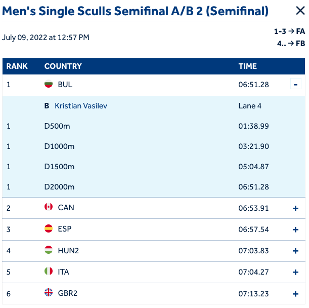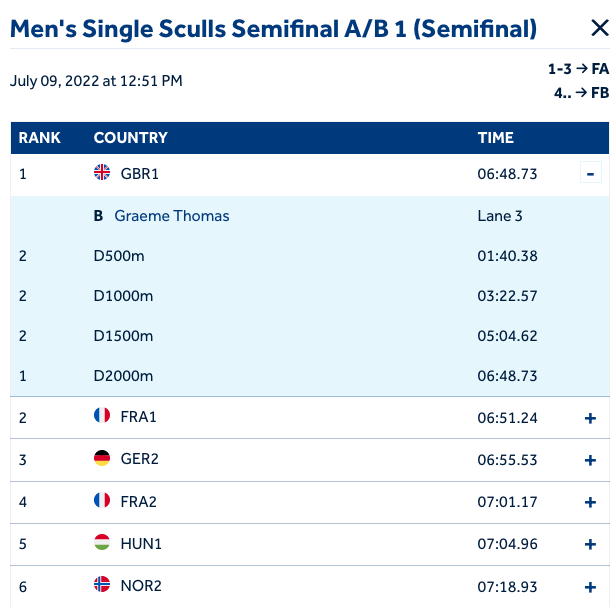 От първия полуфинал в скифа при мъжете до Финал А достигнаха още Греъм Томас (Великобритания) - 6:48.73 минути, Матио Андродаш (Франция) - 6:5.24 минути и Марк Вебер (Германия) - 6:55.53 минути.