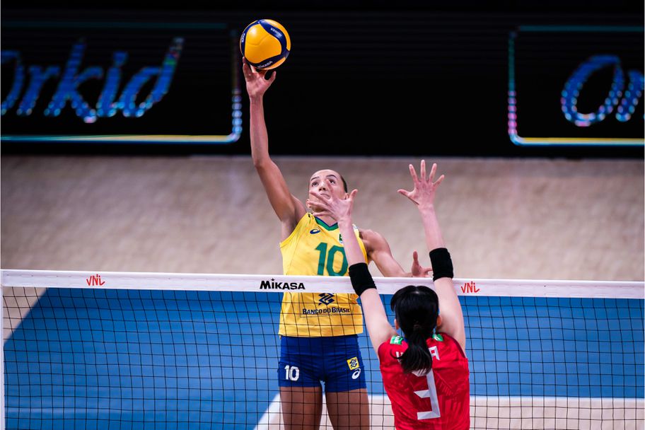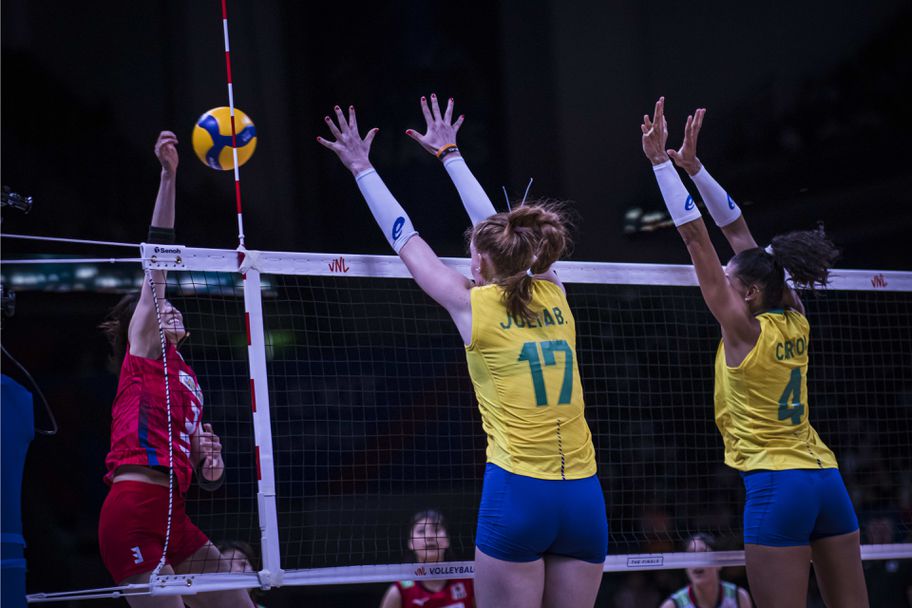 Олимпийският вицешампион Бразилия се класира за полуфиналите във Волейболната Лига на нациите за жени. Момичетата на Зе Роберто се наложиха доста трудно над Япония с 3:1 (29:27, 28:26, 20:25, 25:14) в първия 1/4-финал от финалния турнир на Лигата, игран този следобед в пълната с над 9500 зрители зала в турската столица Анкара.