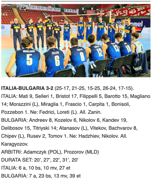България загуби драматично с 2:3 (17:25, 25:21, 25:15, 24:26, 15:17) срещу Италия в двубой от група 2 на Европейското първенство по волейбол за юноши до 18 години в Грузия.