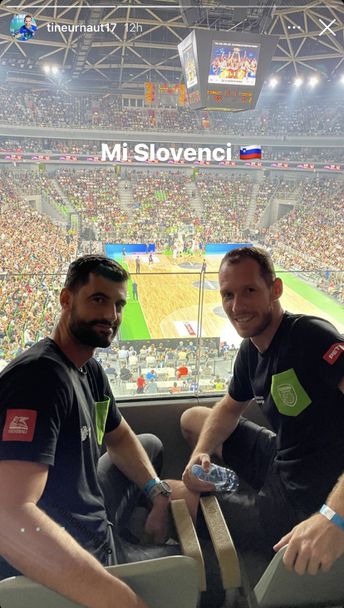 На трибуните в препълнената зала беше и капитанът на мъжкия национален отбор по волейбол на Словения Тине Урнаут, който е близък приятел с Дончич.