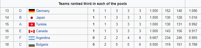 3. В Група В - Куба да разгроми Япония с 3:0 и да спечели много голяма разлика в точките (б.а. Резултат, който е много трудно постижим. Дори и Куба да победи с 3:0, то едва ли ще е с голяма точкова разлика в предвид класата на Япония).