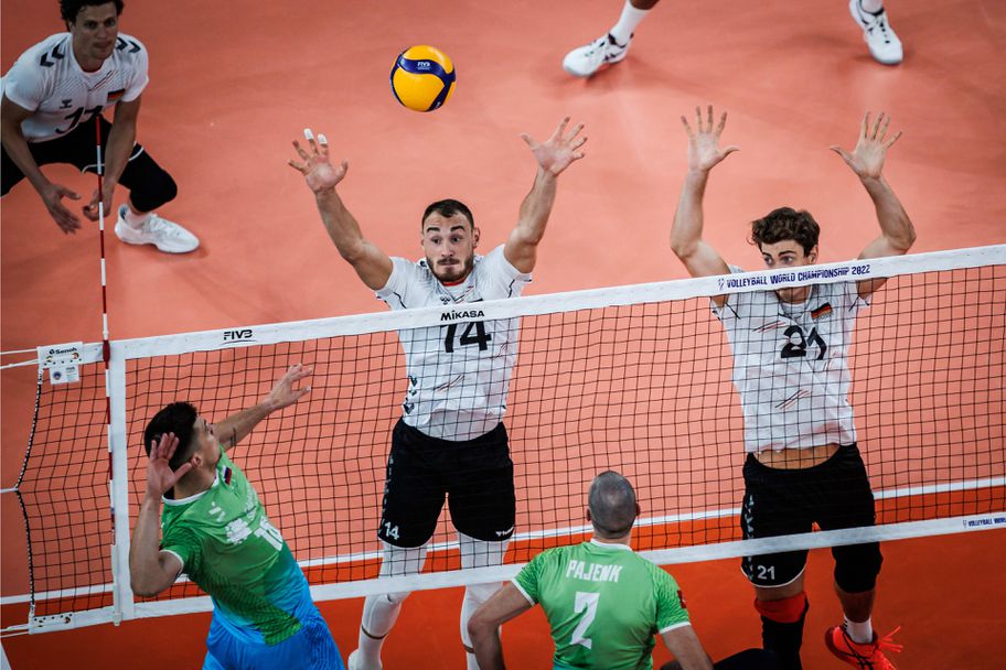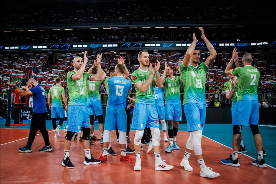 Националният волейболен отбор на Словения се класира напред към 1/8-финалите на Световното първенство, на което е съдомакин. Играчите на Георге Крецу надиграха категорично Германия с 3:0 (25:16, 25:22, 25:17) в последния си мач от Група D на шампионата, игран късно снощи пред около 11 000 зрители в зала "Арена Стожице" в Любляна.