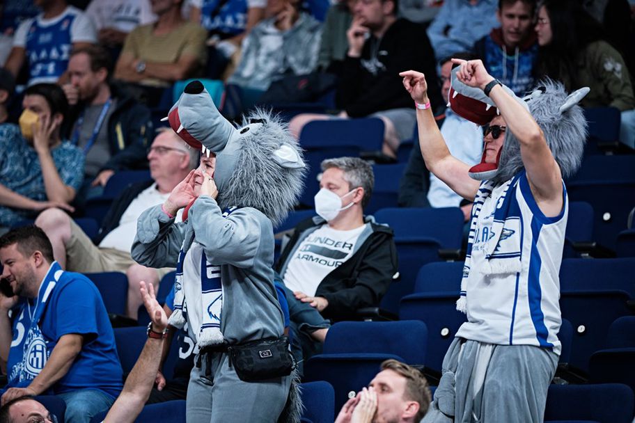 Финландците получиха солидна подкрепа от своите фенове, но голямата атракция сред тях бяха двама души с костюми на вълци.