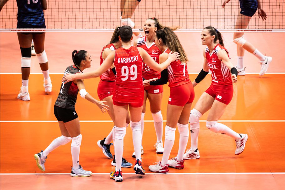 Олимпийският волейболен шампион за жени САЩ се класира за полуфиналите на Мондиал 2022 в Нидерландия и Полша. Момичетата на Карч Кирали биха категорично силния тим на Турция с 3:0 (25:22, 25:15, 25:20) в мач от 1/4-финалите на шампионата, игран тази вечер в зала "Арена Гливице".