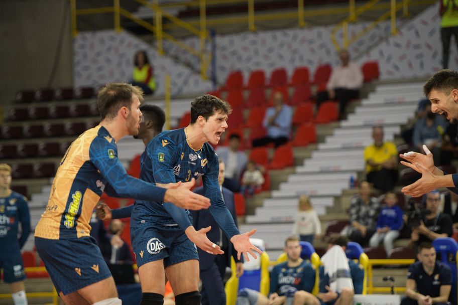 ВЕРОНА: Рафаел Де Оливейра, Максим Сапожков 22, Рок Можич 13, Нумори Кейта 12, Леандро Моска 6, Лоренцо Кортезия 4 - Марко Гаджини-либеро (Лука Спирито, Джулио Магалини 10, Андреа Дзаноти, АЛЕКС ГРОЗДАНОВ 3, Мадс Йенсен)