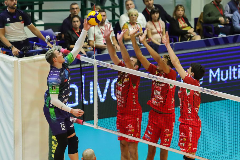 Отборът на Веро Волей (Монца) разгроми шампиона Кучине Лубе (Чивитанова) с 3:0 (25:20, 25:23, 25:12) в мача от 4-ия кръг на Суперлигата на Италия, който се игра пред 2425 зрители в “Арена ди Монца”.