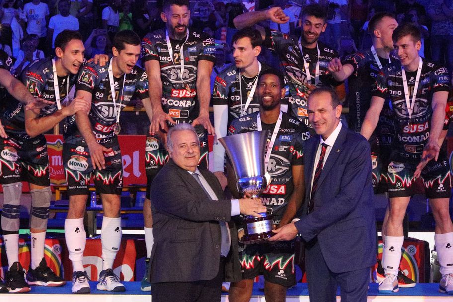 Отборът на Сър Сейфти Суса (Перуджа) снощи спечели Суперкупата на Италия, след като във финалната среща в Каляри се наложи драматично над шампиона Кучине Лубе (Чивитанова), с Александър Николов, с 3:2 (20:25, 25:22, 23:25, 25:22, 15:8).