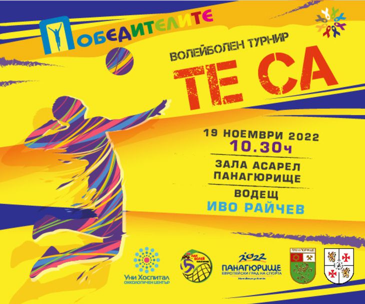 Волейболен турнир под надслов "Те са" ще се проведе на 19 ноември от 10:30 часа в зала "Арена Асарел", Панагюрище. Събитието е част от инициативата "Победителите", която подкрепя пациентите с онкологични заболявания, а организатор е Онкологичният център към МБАЛ "Уни Хоспитал".