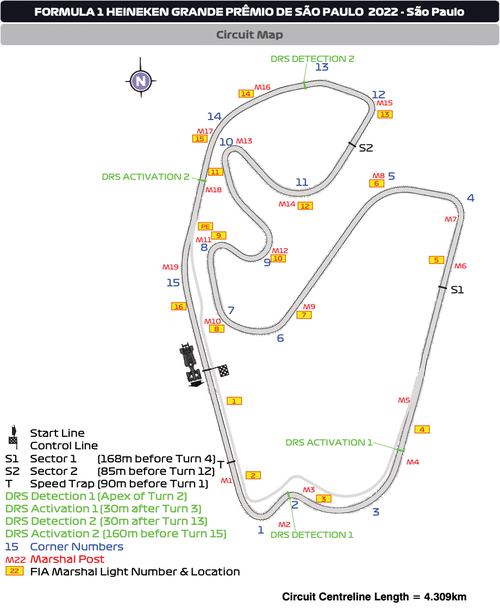 Както и във всяка една визита на Формула 1 в Бразилия от 2013 година насам, пистата „Интерлагос“ отново ще включва две DRS зони за предстоящата Гран При на Сао Пауло. Те отново ще бъдат разположение на старт-финалната права и на тази межди завои 3 и 4.