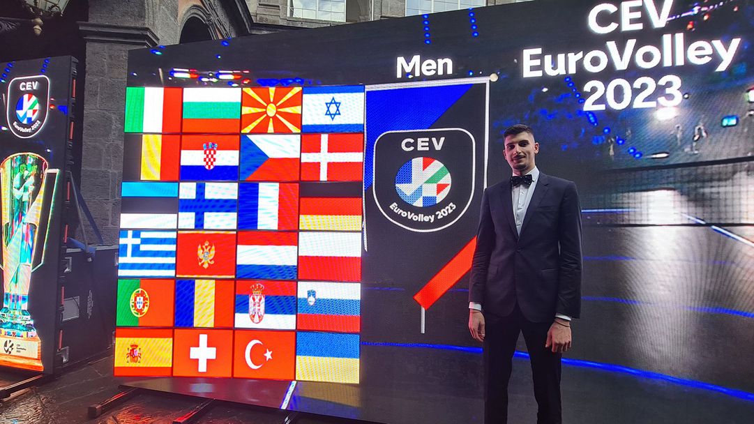 Националът Алекс Грозданов присъства и участва в жребия за Евроволей 2023 в Неапол.