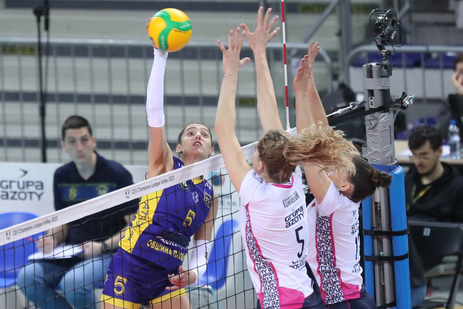 Българският шампион Марица (Пловдив) загуби с 0:3 (18:25, 23:25, 11:25) първия си мач в групите на шампионската лига срещу първенеца на Полша – Група Азоти Хемик (Полице).