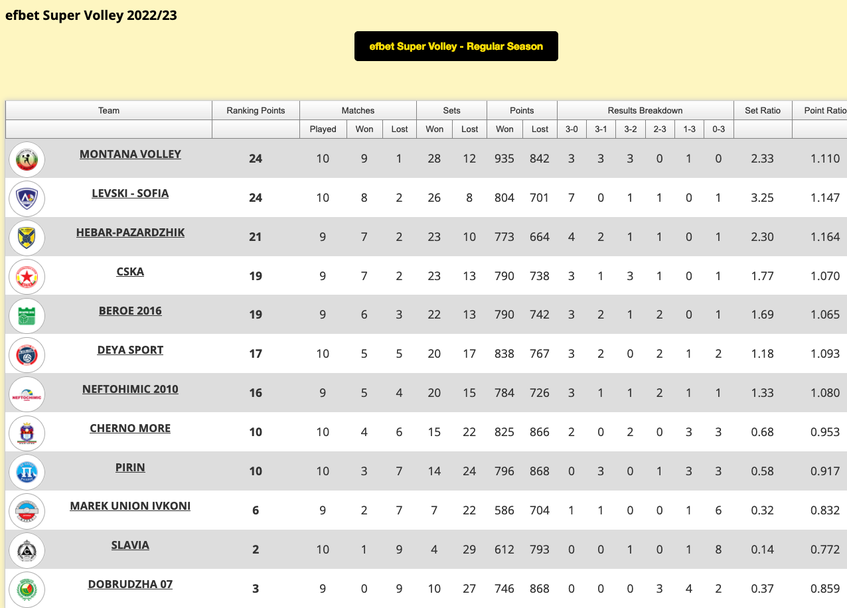 Така монтанчани водят във временното класиране с 9 победи, 1 загуба и 24 точки.