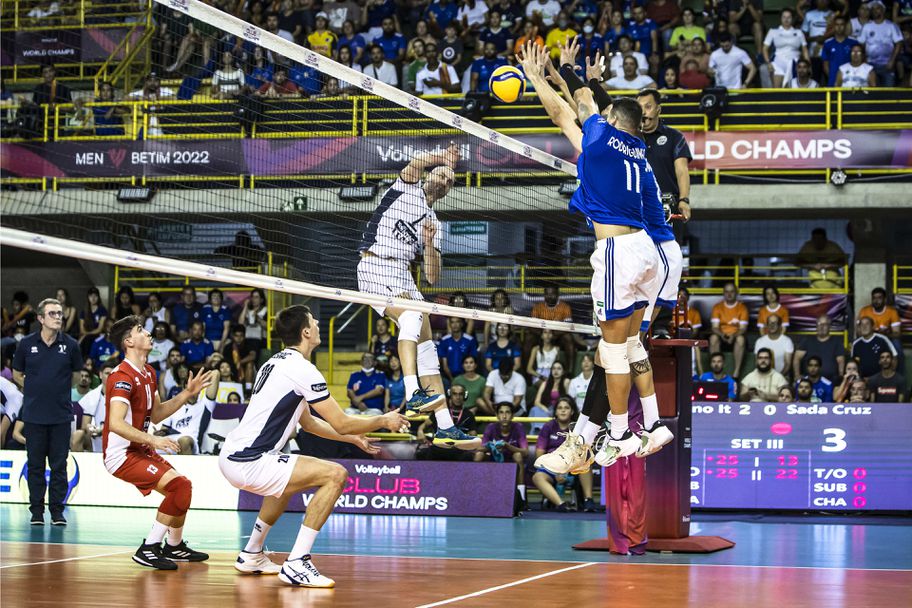 Воденият от Анджело Лоренцети отбор надигра бразилския Сада Крузейро, който е победител в клубния Мондиал от 2021 година, с 3:0 (25:13, 25:22, 25:17) в първия полуфинал на надпреварата, който се игра пред 3458 зрители в зала “Девино Брага”.