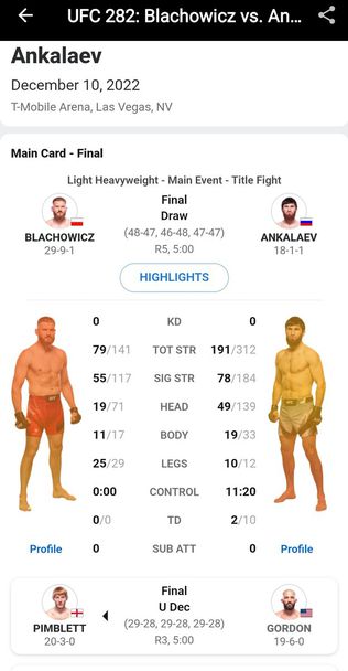 За съжаление такива решения на съдиите са подигравка с бойците и техните усилия. От Verdict MMA пуснаха тяхната оценка на битката, а тя е категорична в победата на Анкалаев. За съжаление с това равенство титлата в категорията остава вакантна.