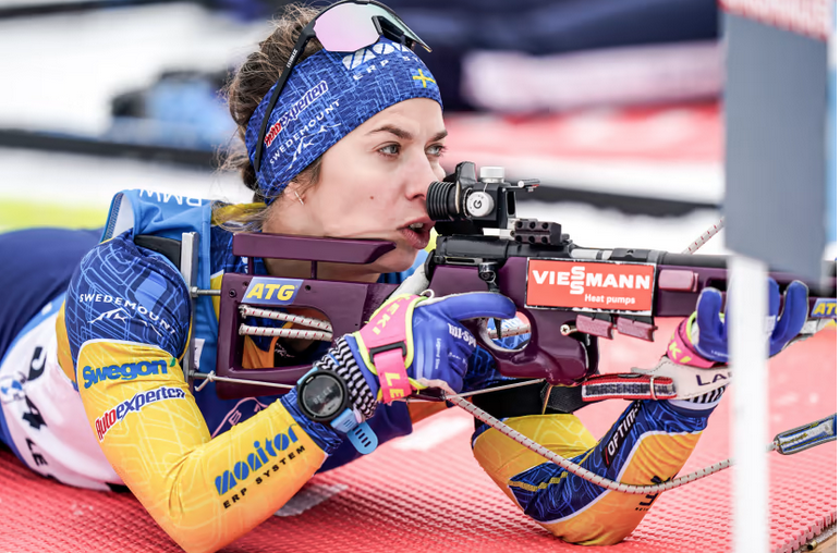 Втора на 12.8 секунди остана нейната сънародничка Лин Персон, а трета на 15.2 се нареди германката Денизе Херман-Вик. Двете допуснаха по една грешка в стрелбата.