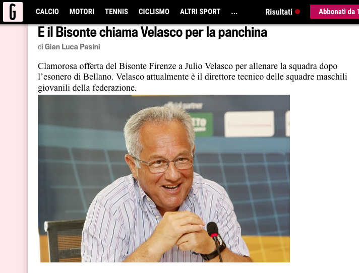 Новината за предложението и евентуалния ангажимент на Веласко бе съобщена от известния колумнист Джан Лука Пазини в блога му в La Gazzetta dello Sport.