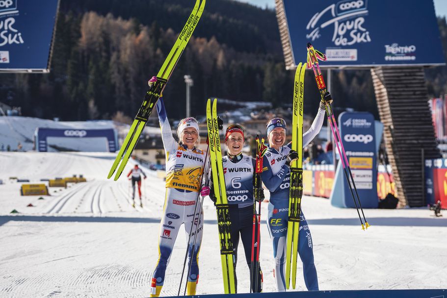 Междувременно Карлсон увеличи преднината си в Тур дьо Ски с половин минута до 1 минута и 12 секунди пред водачката от Световната купа норвежка Тирил Уднес Венг, която трябваше да се задоволи със седмо място днес. Нисканен е трета с 1:37 назад, а Хених изостава с 2 минути на четвърто място. Финалният етап ще бъде в неделя, масов старт на 10 километра свободен стил с изтощителното последно изкачване на Монте Чермис.
