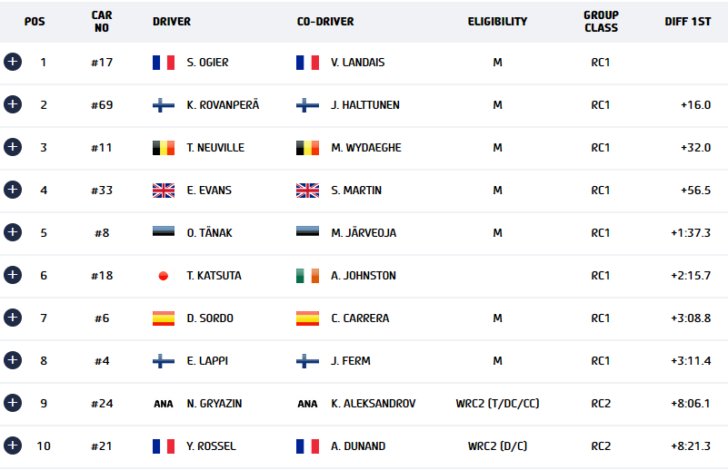 В рамките на днешния ден Рованпера записа три етапни победи, включително номер 100 в своята кариера, в шестте проведени отсечки. Това му помогна да стопи точно 20.0 секунди от пасива, който имаше в началото на деня спрямо Ожие. Осемкратният победител в рали „Монте Карло“ бе най-бърз в само една от днешните шест отсечки.