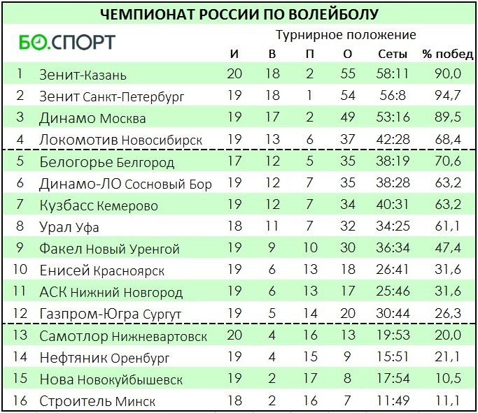 Зенит допусна първо поражение и с актив от 54 точки (18 победи, 1 загуба) остана на второ място, като бе изпреварен от Зенит (Казан), който има 55 точки, но и мач повече.