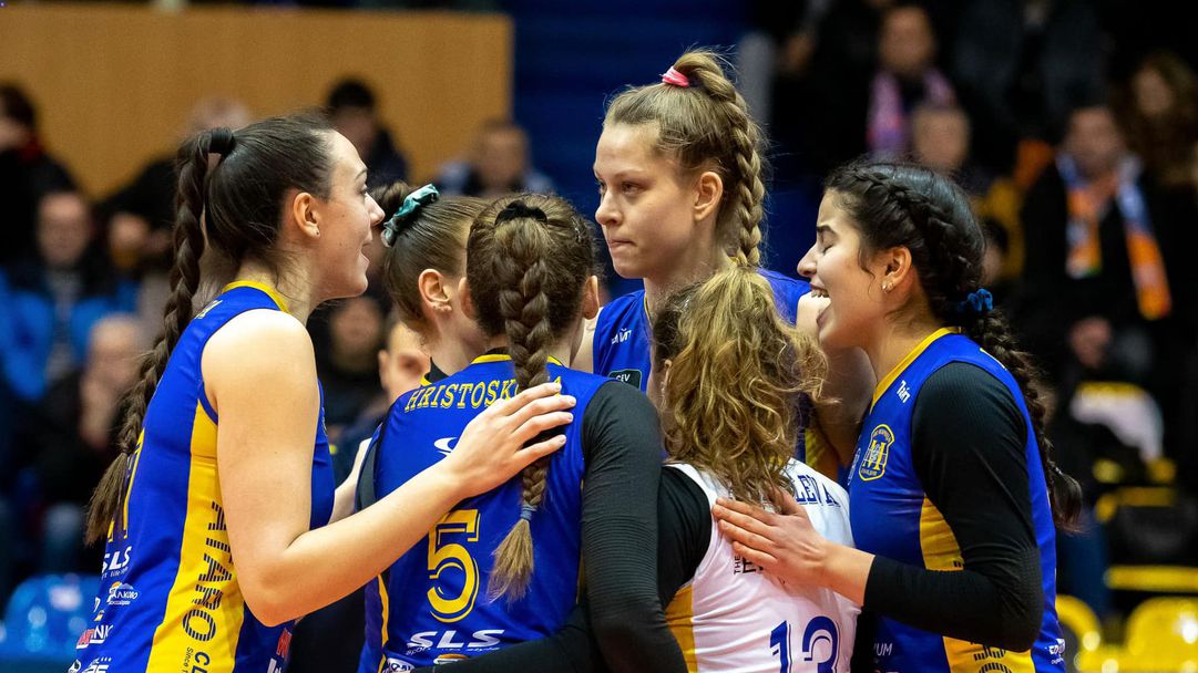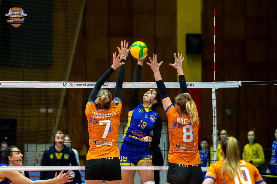 Момичетата на треньора Борислав Крачанов загубиха като гости на румънския КСМ (Търговище), с националката Мира Тодорова, с 0:3 (18:25, 10:25, 24:26) в последния си мач от Група Е на турнира, игран тази вечер.