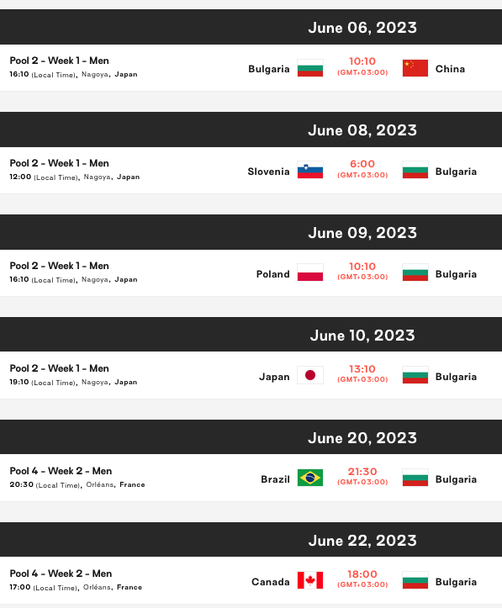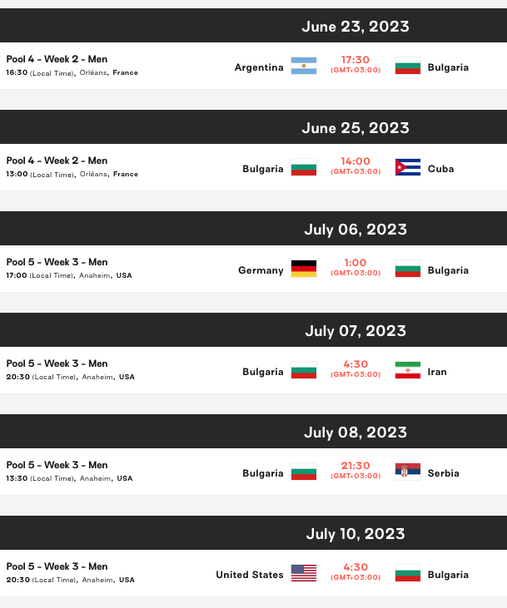 Международната федерация по волейбол (FIVB) обяви програмата за Волейболната лига на нациите през лятото на 2023 година.
