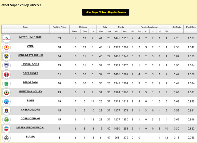 Нефтохимик остава лидер поне до понеделник (27 февруари), когато е дербито между ЦСКА и Хебър (Пазарджик).