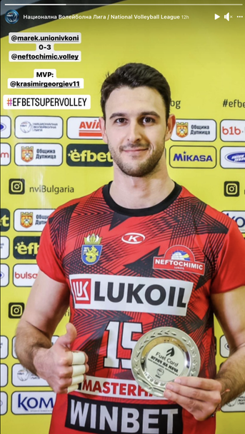 Въпреки това, за Най-полезен играч (MVP) на мача бе обявен Красимир Георгиев (Нефтохимик), който завърши с 6 точки (1 блок, 1 ас и 80% успеваемост в атака - +4) за успеха.