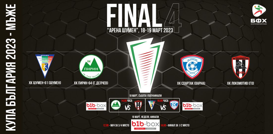 Двата полуфинални мача в събота ще бъдат излъчени наживо от b1b.box. Първият от тях ще бъде предаван само в интернет страницата на медията, а вторият и в ефира на телевизията. В неделя (19 март) мачът за 3-4 място от 12,00 часа и финалът от 14,00 часа ще бъдат предавани пряко по b1b.box.
