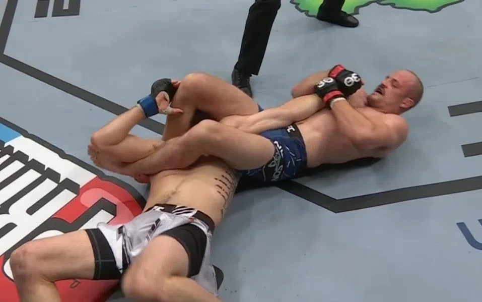 След тежък лакът от Нелсън, Брайън беше зашеметен и не успя да противодейства на Нелсън, който му приложи ключ на ръката. Барберена се предаде, а битката приключи за 4 минути и 51 секунди.