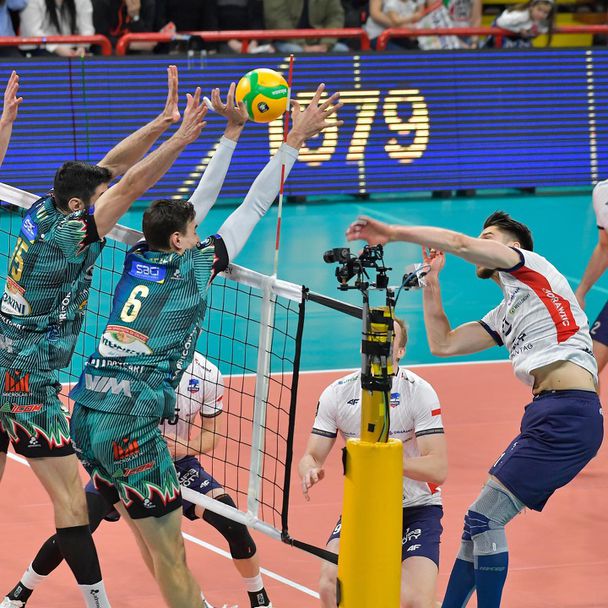 ПЕРУДЖА: Симоне Джанели 2, Камил Рихлицки, Вилфредо Леон 10, Камил Семенюк 12, Роберто Русо 1, Флавио Жуалберто 6 - Масимо Колачи-либеро (Хайме Хесус Ерера 13, Олег Плотницкий 10, Алесандро Пичинели-либеро, Себастиан Соле 7, Грегор Ропрет 1, Стефано Менгоци 4)
