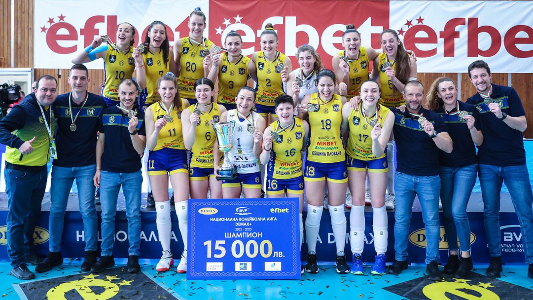 Волейболистките на Марица (Пловдив) триумфираха с девета поредна титла в Демакс лигата при жените.