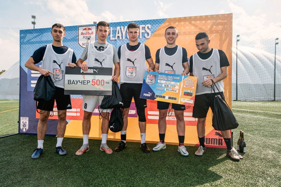 След 2 квалификации в София и Пловдив, отбор Non-Stop надделя над останалите 23 отбора от по четири човека и стана първият национален шампион в историята на Red Bull Four 2 Score България. Участниците ще представят страната ни на глобалния финал на Red Bull Four 2 Score на арена Red Bull Leipzing през август тази година.