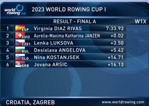 Най-добрата българска състезателка по гребане Десислава Ангелова се класира на престижното 4-о място на финал А на скиф в I кръг на на Световната купа в Загреб (Хърватия).