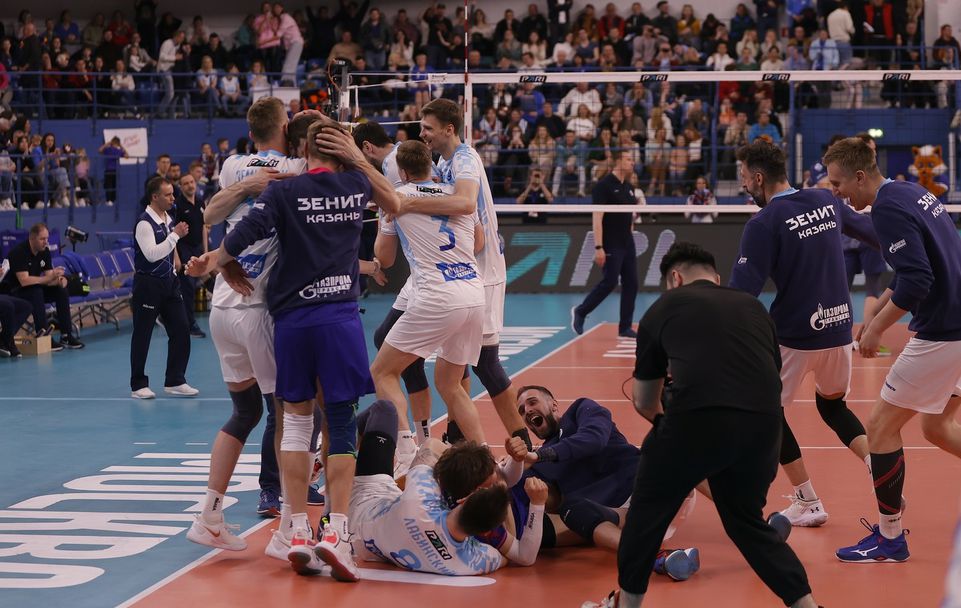 Грандът Зенит (Казан) е новият волейболен шампион на Русия! Момчетата на Алексей Вербов направиха невероятен обрат от 0:2 до крайното 3:2 (23:25, 23:25, 25:17, 30:28, 15:13) като гости на вече бившият шампион Динамо (Москва), с Цветан Соколов в състава, в мач №3 от финалната серия в руската Суперлига, игран тази вечер.
