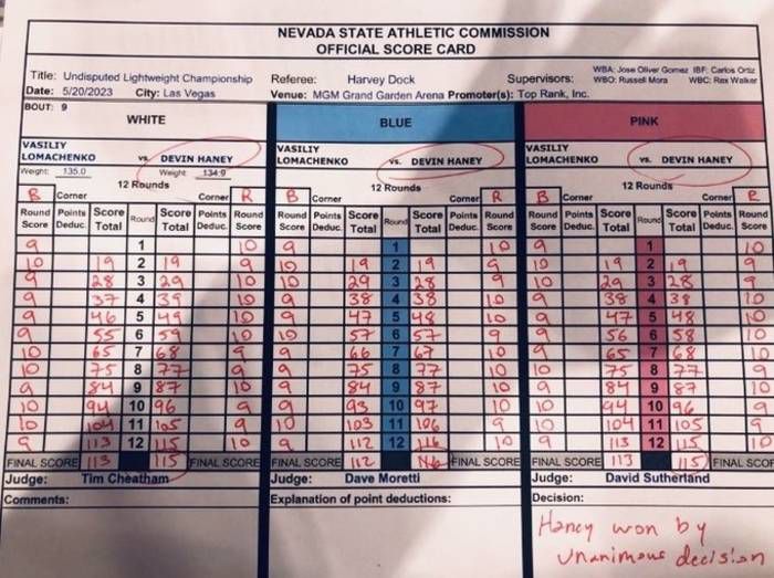 Американецът записа 30-та победа в професионалния бокс на ринга в MGM Grand Garden Arena в Лас Вегас. Лома показа по-добра издържливост и пласира повече удари в последните четири рунда на битката, но според съдиите 24-годишният Хейни е заслужил съдийското решение, благодарение на по-силните първи рундове за него.