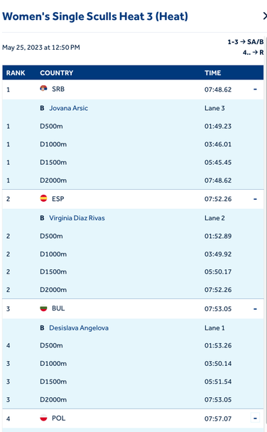 Българката Десислав Ангелова се класира на полуфинал в дисциплината скиф на Европейското първенство по гребане за мъже и жени в Блед (Словения).