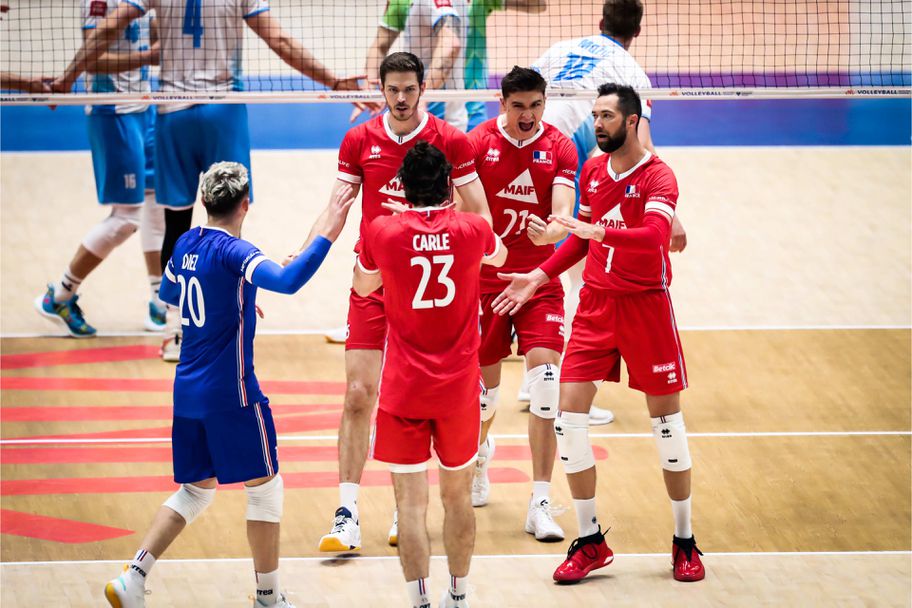 ФРАНЦИЯ: Рафаел Коре 2, Тео Форе 13, Тимоти Карле 16, Кевин Тили 9, Дарил Бюлтор 6, Кентен Жофроа 10 - Бенжамен Диез-либеро (Илар Ено)