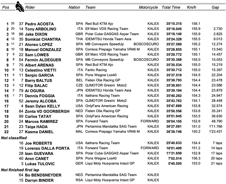 Дуелът за световната титла между Акоста и Арболино ще продължи след седмица с надпреварата за Гран При на Нидерландия. Състезанието на „Ассен“ ще бъде последното преди лятната пауза в шампионата.
