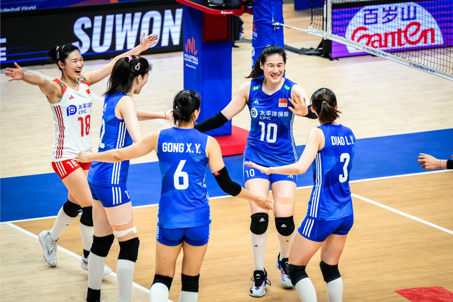 Волейболистките от националния отбор на Китай завършиха с победа основната фаза на тазгодишната Лига на нациите за жени. Воденият от треньора Бин Цай тим направи много труден обрат и се наложи над олимпийския шампион САЩ с 3:2 (18:25, 25:19, 19:25, 25:20, 15:8) в последния мач от турнира в Група 5 от последната седмица на груповата фаза на Лигата, игран днес по обед в Сувон (Република Корея).