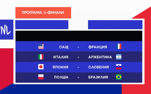 Програма на 1/4-тфиналите на Лигата на нациите при мъжете: