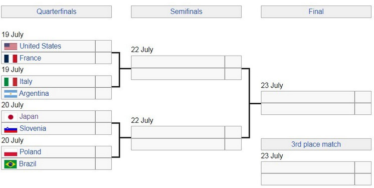 Завършилият на второ място тим на Япония излиза срещу 7-ия Словения.