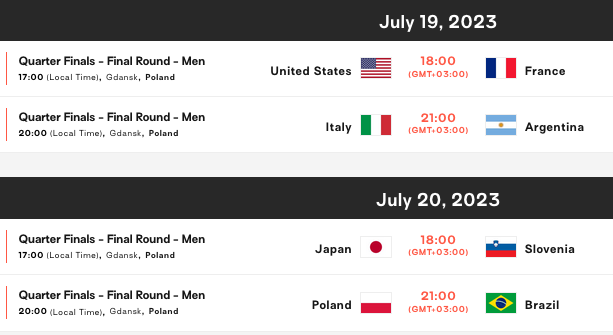 Победителят от груповата фаза САЩ ще срещне 8-ия Франция, който е и победител във VNL от 2022 година.