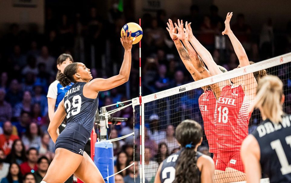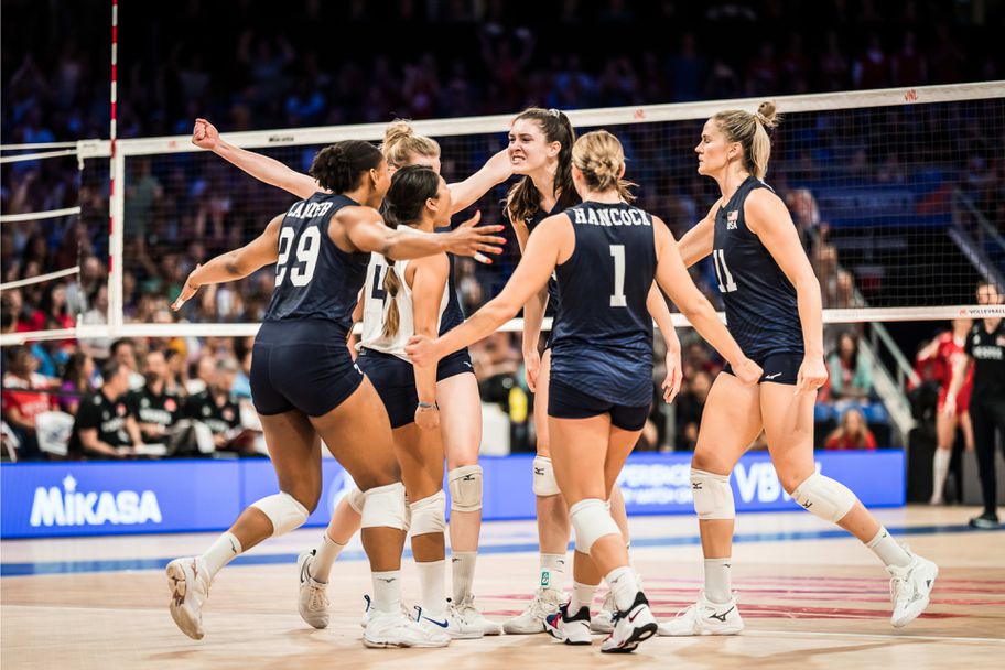 САЩ: Миша Ханкок 7, Андреа Дрюс 14, Калия Лейниър 18, Келси Робинсън-Кук 1, Хейли Уошингтън, Чиака Огбогу 6 - Джъстин Уон-Орантс-либеро (Алекзандра Франти 12, Джордън Томпсън 1, Дейна Ретке 2, Асджиа О'Нийл 3, Ейвъри Скинър 3)