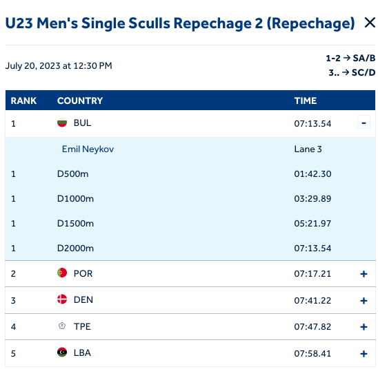 Емил Нейков се класира за полуфиналите на скиф на Световното първенство по гребане за мъже и жени до 23 години в Пловдив.