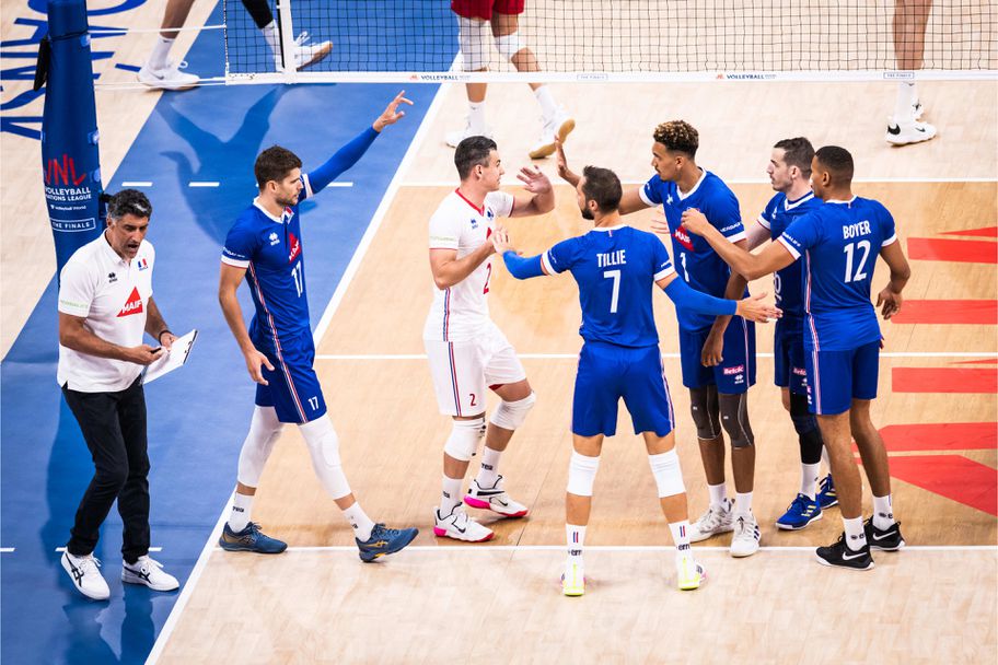Волейболистите от националния отбор на САЩ се класираха за полуфиналите на тазгодишната Лига на нациите. Момчетата на селекционера Джон Спероу буквално излъгаха и детронираха миналогодишния победител в надпреварата - олимпийския шампион Франция, с 3:2 (25:21, 25:18, 17:25, 24:26, 15:9) в първия 1/4-финал от финалния турнир на Лигата, игран снощи пред около 5500 зрители в зала "Ерго Арена" в Гданск (Полша).