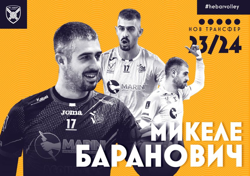 Хебър (Пазарджик) привлече бившия италиански национал Микеле Баранович. Разпределителят от полски произход ще дирижира играта на "тигрите" през новия сезон, след като прекара два сезона в Топ Волей Чистерна (Латина).