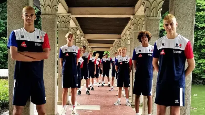 Френският национален отбор на Евроволей `23 за юноши до 17 г. Виден Нацев е с №4.