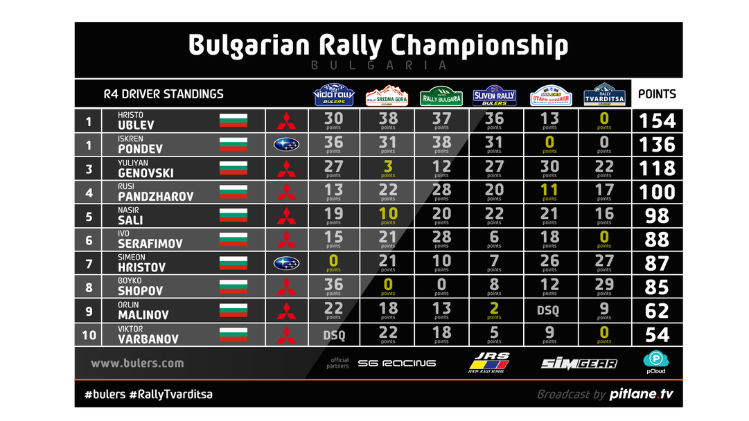 Шопов завърши 6-и, спечелвайки победата в R4 класа пред Христов, който бе 10-и в общото класиране за ралито. Самуил Иванов записа най-добрия си резултат за сезона, завършвайки 7-и, а 8-и и 9-и бяха съответно Коцев и Стойчев.
