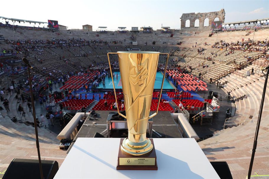 Интересното е, че откриващият мач се игра не в зала, а на легендарния древен римски амфитеатър “Арена ди Верона” във Верона пред 8810 зрители.